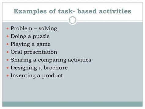 examples of task based activities. There are any references about examples of task based activities in here. you can look below.