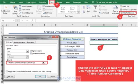 excel dynamic drop down list based on another cell