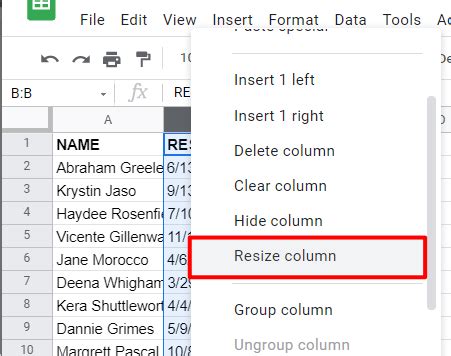 how do i format column width in google sheets