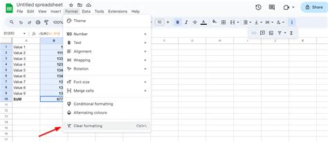 how to clear formatting in a cell in google sheets