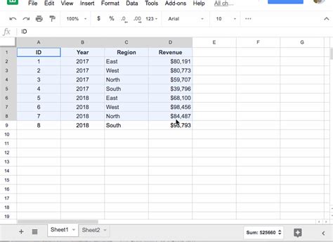 how to create table format in google sheets