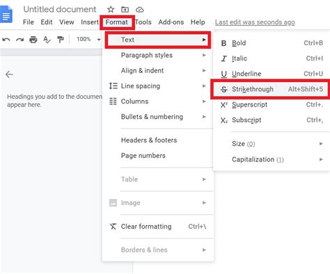 how to get strikethrough on google docs