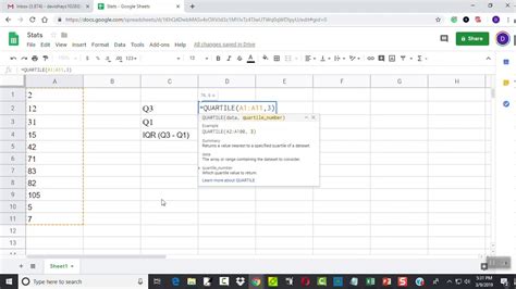 interquartile range formula in google sheets
