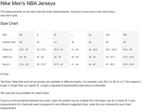 nike nba jersey sizing chart