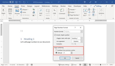 page numbering in a document is added within a
